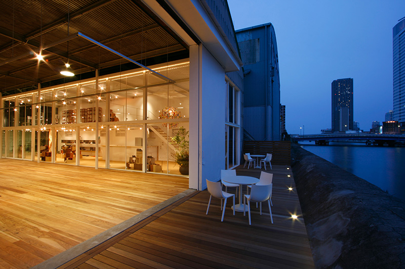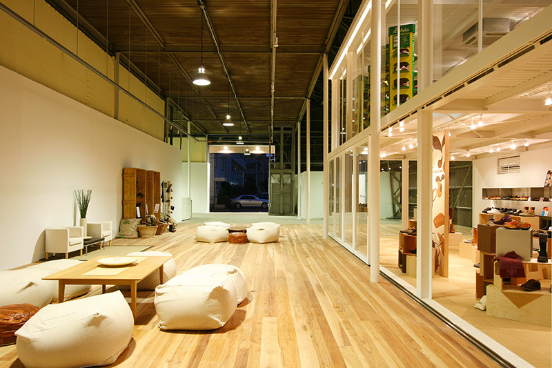 例えばある靴メーカーのリノベーションの案件。元々オフィスは青山の狭くて高い物件を借りていて、新作の発表会はこれまた何百万円も払ってイベントスペースを借りて行なっていました。それを全部ひとつにまとめましょうと勝どきの運河沿いの倉庫を改造してオフィス兼ショールームを造ったんです。