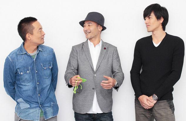 渋谷区へのピープルデザインの導入を打診し、現在須藤さんとともに推進している渋谷区議の長谷部健さん(写真左)、須藤シンジさん(中)、ピープルデザインという思想に共感し、コミュニケーションチャームの告知などに協力している要潤さん(右)●写真/SHIPS MAG