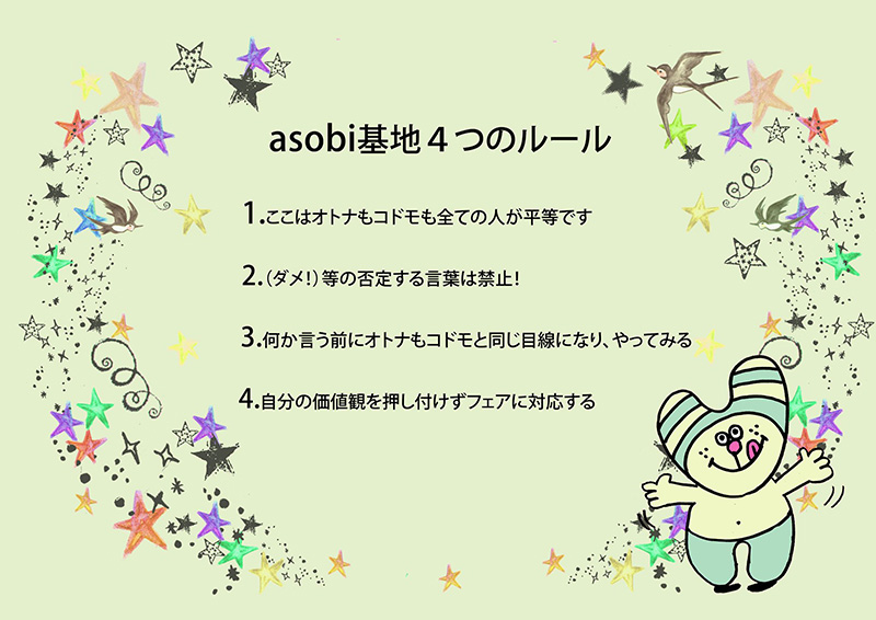 このようなコミュニティを実現するために、「asobi基地」には、簡単な4つのルールがあります。