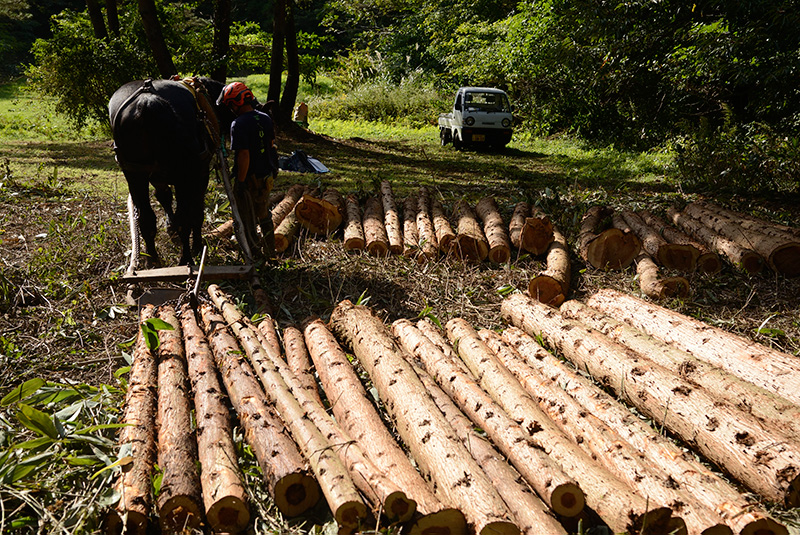 同時に、馬で木を運ぶ行為がとても合理的でおもしろいなと感じました。当時やっていた馬車もおもしろかったけれど、馬搬を繰り返すと運び出した木がたまっていきます。仕事の成果が目に見えてわかるので働いたという実感がもてます。それで馬で何かをやるなら馬搬がやりたいなと思ったんです。これが馬搬を始めたきっかけです。ですから最初は山を傷めないからとかエコだからという理由ではなかったんです。