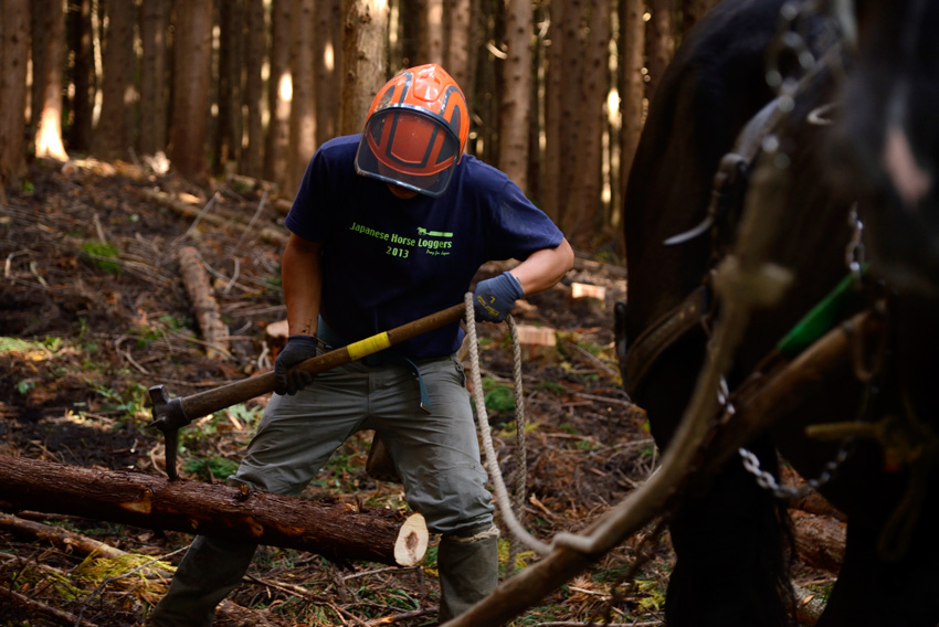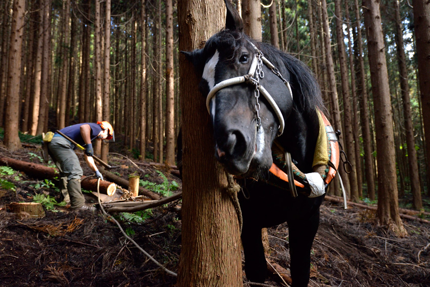 はい。自分で伐ります。その方が馬で運びやすいように考えて伐れるので。ただ、馬搬が盛んだった頃は木を伐る担当の人もいたようです。