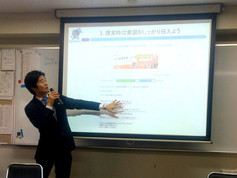 現在もっとも力を入れているのは、第3のステップである「教育」です。ランサーズで暮らせるようになったフリーランサーの方々に講師になってもらって、どうやってクライアントやリピーターを増やしていったのか、どんなふうに仕事をしているのか、ランサーズの上手な使い方など、フリーランサーとして自活するノウハウを多くのフリーランサーにレクチャーする「47都道府県おじゃまします! フリーランス交流会」を開催しているんです。いわば全国フリーランス行脚イベントですね。毎回平均50人ほどが参加してけっこう盛況なんです。