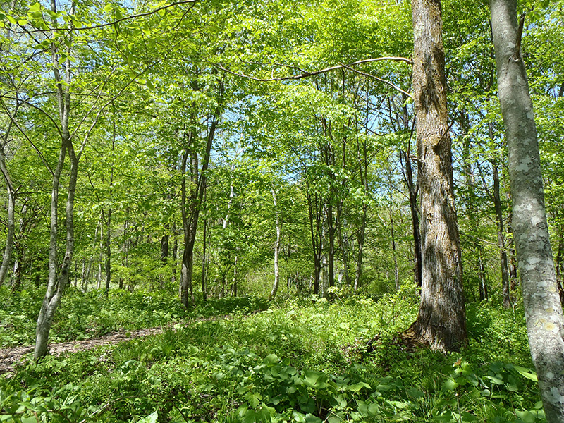 アファンの森ではこれまでたくさんの手を入れてきましたが、中には新しくトラストをしたエリアなどまったく手付かずの荒れ放題のエリアがあります。このような場所は基本的には、まずヤブ刈りツル切りを行い見通しをよくします。ヤブが濃いとどんな木が生えているかすらわからないこともあります。見通しがよくなると健康な木、不健康な木がよくわかります。基本はよい木を残して森にしていくので、不健康な木を伐採して大きく空間の空いたところには植林も行います。その後は下草刈りなどを行いながら、天然更新ができるところまで管理をしていきます。言葉にすると簡単ですが、何せ自然相手ですから思うようにいかないことも多く、何十年という歳月も必要になります。
