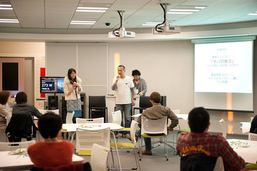 産地の海や魚に関する情報発信、さまざまな魚の食べ方の提案、手頃な価格の魚食堂、産地PR活動の支援、などを目的として、去年(2013年)の6月から営業を開始した食堂です。ただ新鮮でおいしい魚料理を提供するだけでなく、ワンフィッシュナイトという「鯖ナイト」や「魚しゃぶしゃぶの会」というイベントを開催したり、自宅で食べてもらうための料理のレシピも教えてきました。(※現在は体制のリニューアルのため一時休業中)