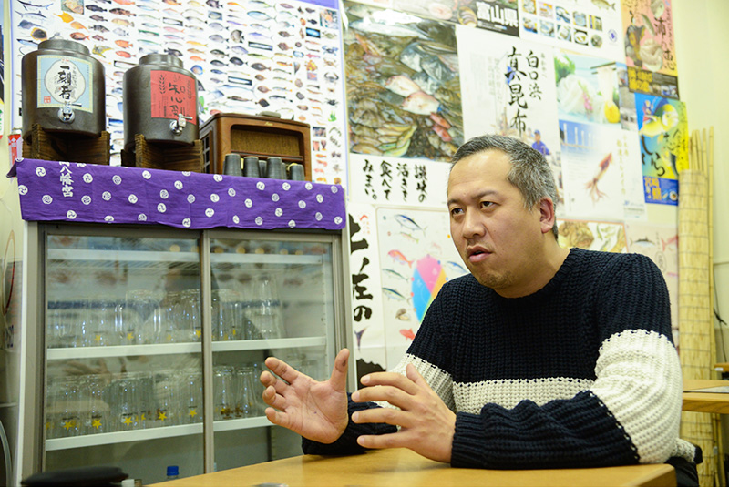 単にお客さんに魚を売って利益を上げるだけじゃなくて、魚を買ったお客さんが最終的に笑顔になるところまでが僕らの仕事だと思っています。社員にはいつも「おもろい魚屋でいようや」と言ってます。それはお客さんを笑わせるという意味だけじゃなくて、おいしいものを食べたら誰でも思わず笑顔になりますやん。鯵ひとつとってもたくさん種類があって、季節や食べたい料理に合わせてそれならこの鯵でこんな料理がいいですよと教えてあげて、その鯵を食べるシーンごとに喜ばれ、おいしいと感じ、一緒に食卓を囲むみんなが食べながら笑えたら最高やなと。そういうところまで考えて、魚の売り方とか店の提案を考えていこうねと。それがこの世界に入ってから一貫してもっている僕の経営ポリシーですね。