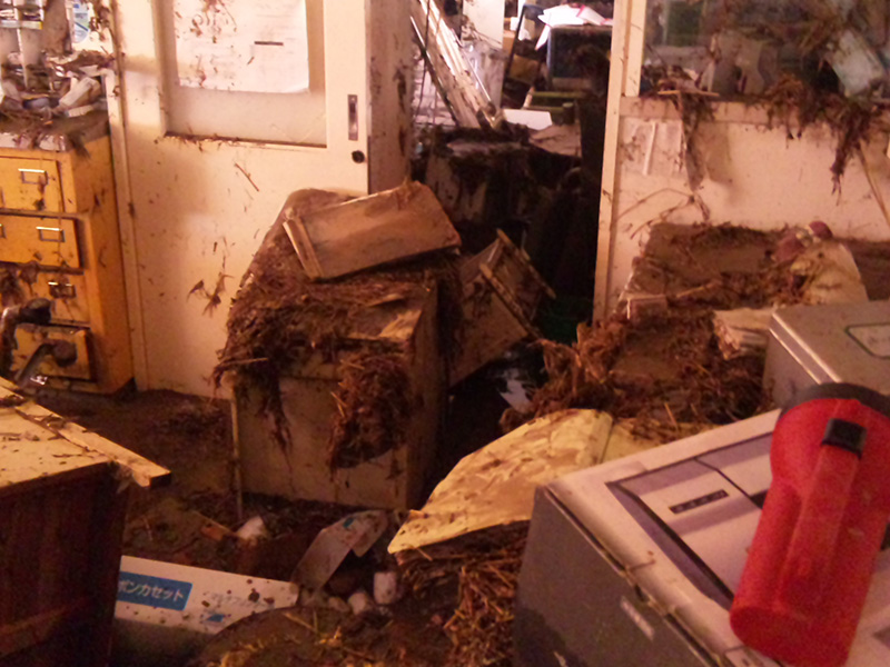 1階部分は天井付近まで押し寄せた津波でめちゃめちゃになっており、院内は当然ながら暖房も入らず、検査機器も使えず、薬もなく、水すら出ませんでした。ですので震災発生から10日目に入院患者全員を岩手県内の病院に移送したのですが、その直後、連日泊まり込みで診療に当たっていた院長が辞職して病院を去りました。ちょうど同じ日にもう一人の常勤医師も不在となったことで、一時は地域で唯一の医療機関(歯科医院を除く)だった病院の存続そのものが危機に瀕していたところ、全国からボランティアが集まり、なんとか存続させていたのでした。