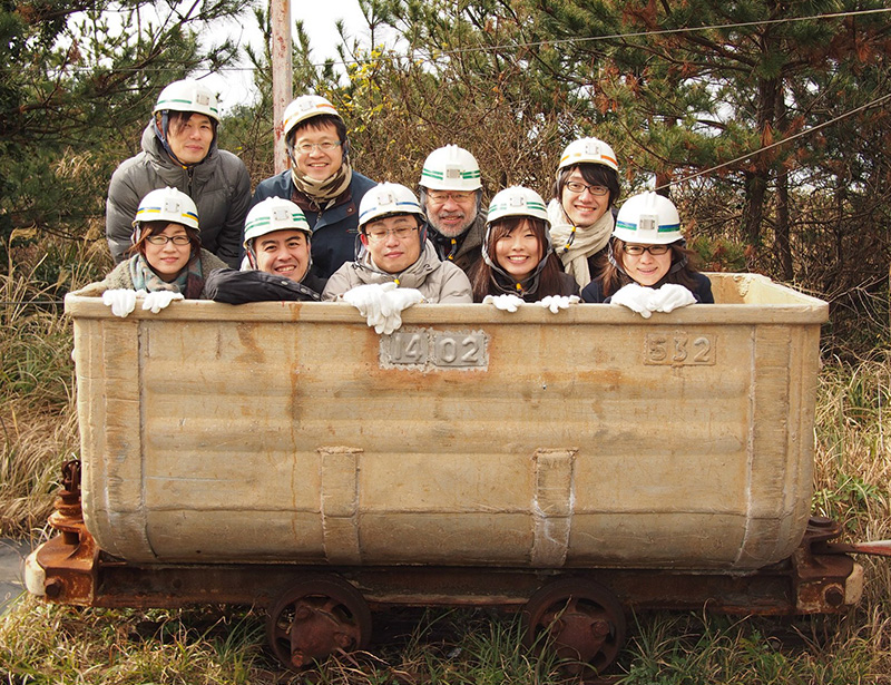 池島を訪れた人たちのガイドも(写真は大阪大学の先生と学生)