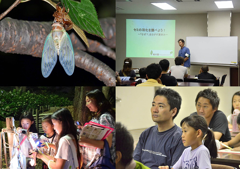 また、小学生向け、高校生向け、一般向けと年代によって内容を分けています。これは、年代に応じて知識も理解度も興味も異なるのに合わせて最適な内容で実施し分けることで、参加者の満足度を上げるための試みです。子どもと大人が一緒に参加できる親子向けのイベントもあります。例えば親子向けでは毎年夏にセミの観察会を実施しています。また、ある年の夏に柏の葉キャンパス駅前にいろんなお店が出店するイベントが開催され、そこにKSELもブースを出店しました。そのとき主催者が企画の一つとして作ったビアガーデンで、子どもたちも一緒になって楽しめるよう、ビールに見えるゼリーを作るワークショップを開催しました。大人はビールを、子どもはゼリーを片手に乾杯し、大いに盛り上がって大好評でした。