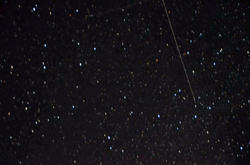 「理科の修学旅行」で行った星空観測。光の筋のように見えるのは人工衛星