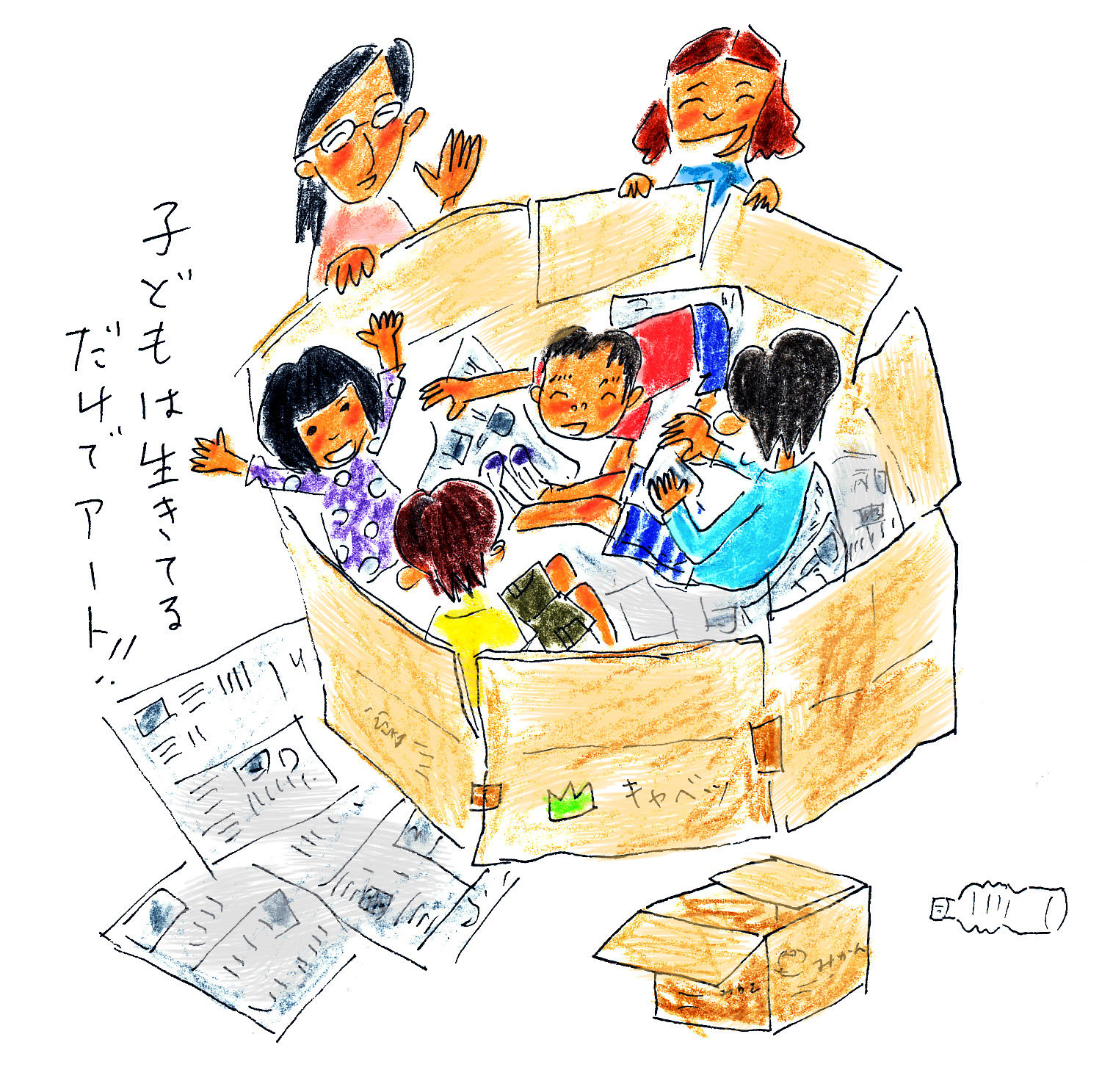 小笠原 asobi基地では子どもがずっと顔にシールを貼ったり、ひたすらストローを切ったり、新聞を破っているんですが、これらは大人にとっては無意味な行動だけど、子どもたちはすごく楽しそうに笑顔でやっているんですよね。そういう彼らの姿から人ってこんなに幸せに生きられるんだなということを教えてもらって、すごく楽に生きられるようになった。子どもという人に出会って新しい気づきをもらったり、今までの概念をいい意味で崩してもらった。私の場合は人生での大切なことを気付かせてくれたのがたまたま出会った子どもたちだったので、子どもたちに恩返しするために彼らの自由な発想を守ってあげて、いい社会をつくりたいと思っているんですね。そのためにいろんなプロジェクトやっているわけです。それと同じで宏子さんはアートという言葉をなくしたくないというのはアートに恩返しをしたいみたいな思いもあるんじゃないかな。