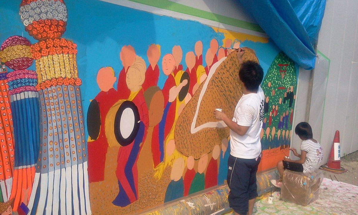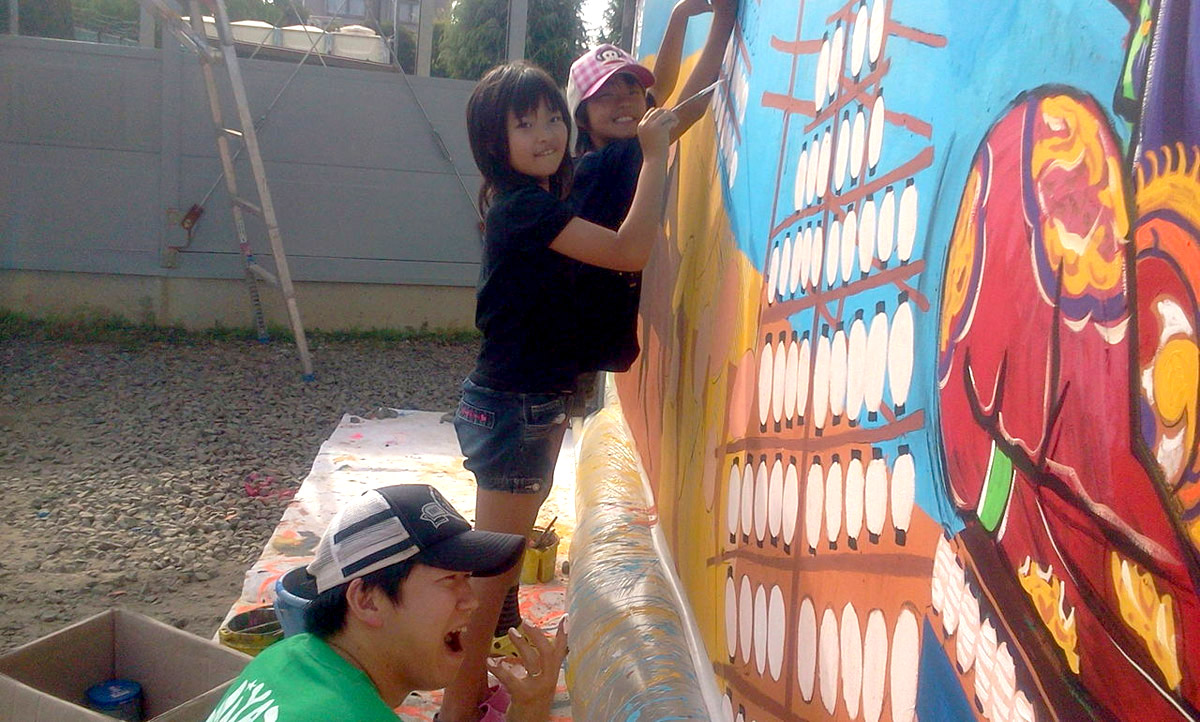 ──3.11の東日本大震災のとき、東北の被災地でも支援活動として壁画を描いてますよね。どういう経緯でその活動を?