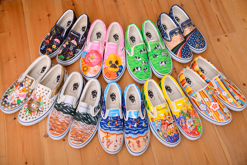 オーダーメイドは個人や企業から依頼を受けて記念の絵やエントランスに飾る大きな絵、イベントのポスターなどを描くこともあります。珍しいものでは靴に描いたりもしています。