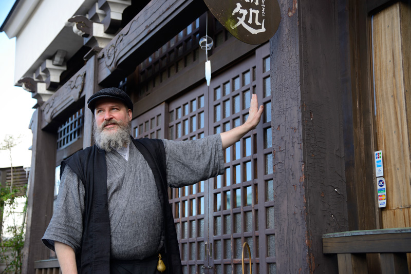 これが矢立て。朝、墨壺に墨を入れることからアランさんの一日が始まる。毎日使っているので、筆は4~5週間ほどで毛が摩耗して使えなくなるので買い直す。明治期の日本人の多くは矢立てを持っていた