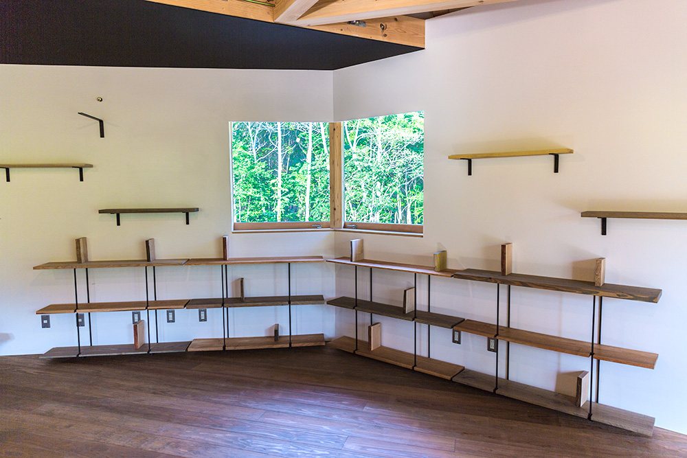アファンの森にあるホースロッジは早稲田大学建築学科の古谷先生の設計なのですが、古谷先生の研究室の学生さんと一緒にアファンの森で家具製作のワークショップを開催して、できあがった家具をホースロッジに設置しました。
