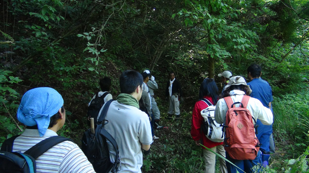 2012年10月には、復興の森づくりのワークショップをスタート。初回は大人から子どもまで100人を超える多くの地域住民やボランティアが参加した。当日は大規模災害時に生き残るためのアウトドア技術やサバイバルスキルなどを学んだほか、参加者みんなで荒れ果てた山に入りヤブを刈り、道を作るという整備作業を行った。