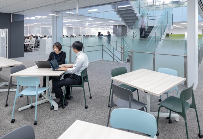 - 執務スペースは空間を遮るものがなく、見通し・風通しがよくなったほか、管理職も含めた課内フリーアドレスにより、周囲とのコミュニケーションがとりやすくなった。
