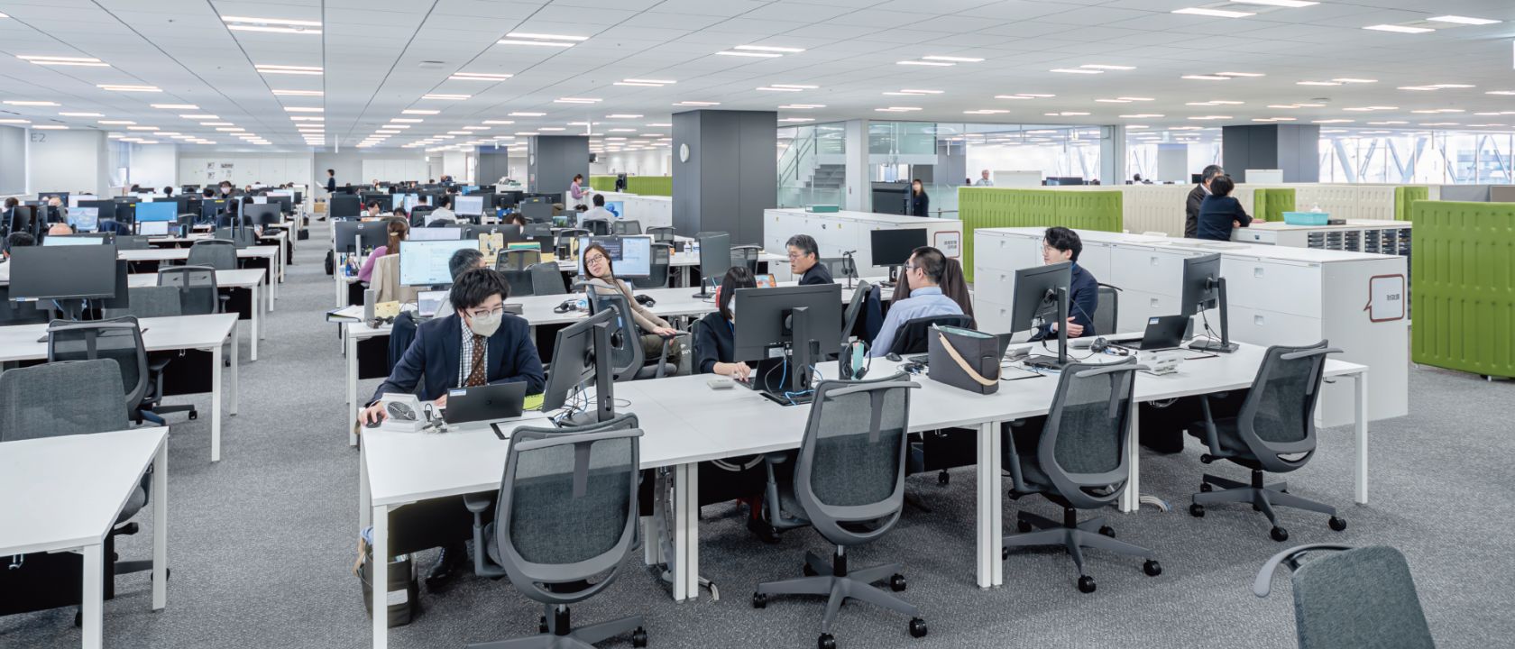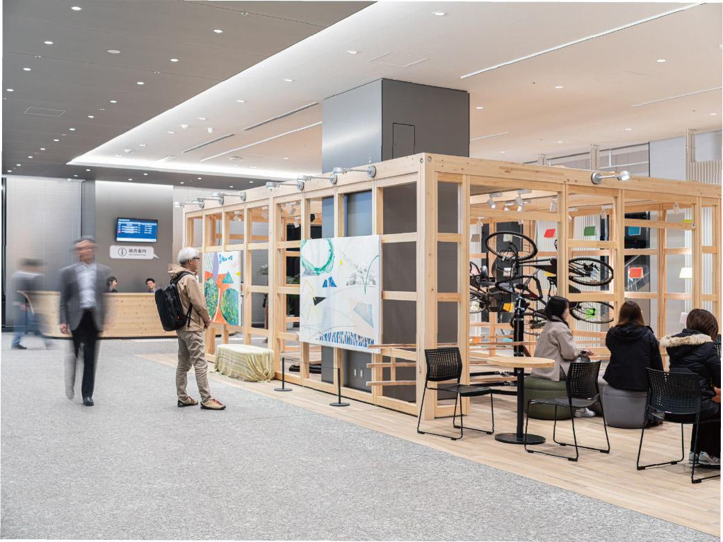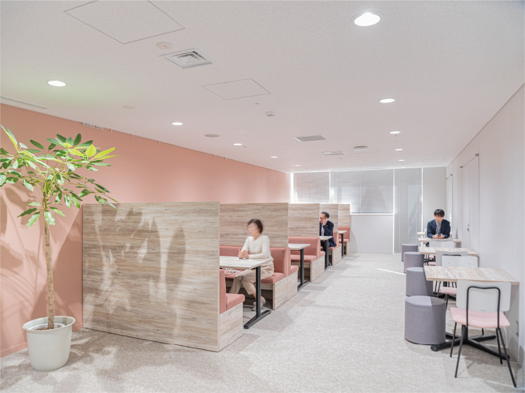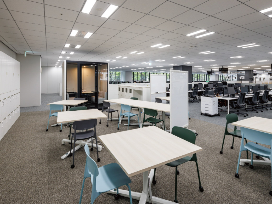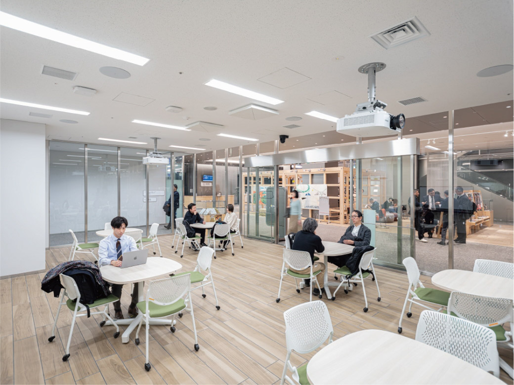 新庁舎では、最小のコストで最大の効果が発揮できるようモノとスペースの集約・共用化を実現し、新しい価値を生み出す多くの場を用意しました。業務内容に応じて、主体的に場所を選択できることが仕事の柔軟性や「創造性・生産性の向上」につながり、働くことに対する職員一人ひとりのモチベーションも高まっています。