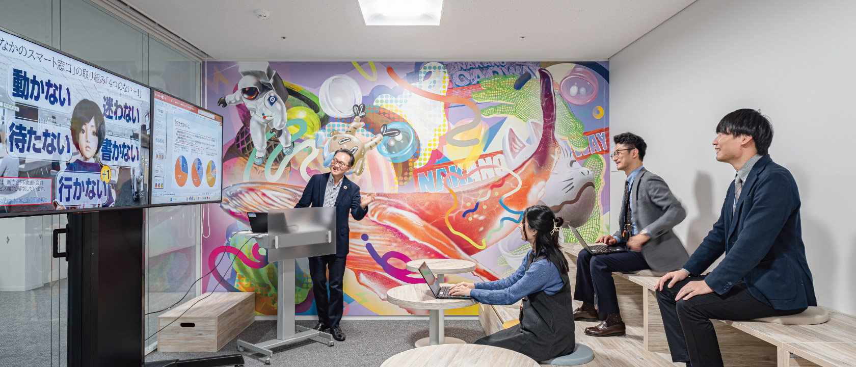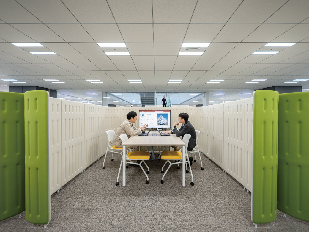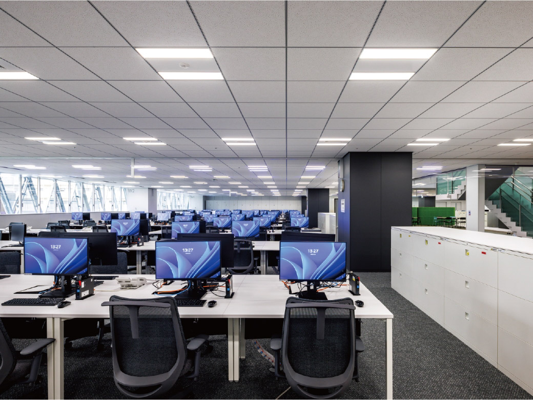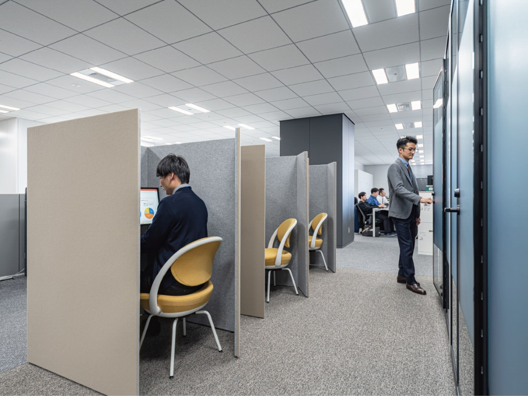 新庁舎では、最小のコストで最大の効果が発揮できるようモノとスペースの集約・共用化を実現し、新しい価値を生み出す多くの場を用意しました。業務内容に応じて、主体的に場所を選択できることが仕事の柔軟性や「創造性・生産性の向上」につながり、働くことに対する職員一人ひとりのモチベーションも高まっています。