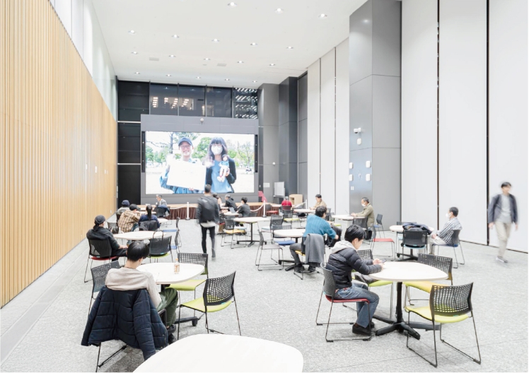 区民の皆さまに使っていただける数々のスペースを1階に創り、イベント以外の時も自由にご利用いただいています。旧庁舎ではそのようなスペースがなかったので、用事のない方は訪れなかったでしょう。今はふらっと立ち寄り、ちょっとコーヒーでも飲んで仕事をしていこうとか、中学生が宿題をここでしていこうよなど、さまざまな使い方のシーンが見られます。ヨーロッパで“City Hall”と言われるところが市民の集う場所であるように、新しい区役所が“City Hall”としての役割を担えるようになったと感じます。